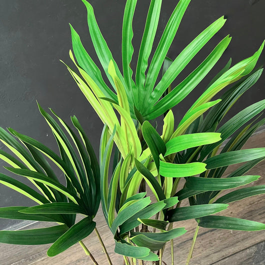 Planted in a sleek white pot, this artificial palm adds style and greenery without the need for maintenance.