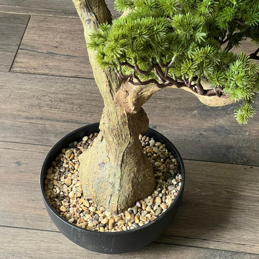 The bonsai pine artificial tree, standing 106cm tall, brings a touch of serene nature to your home or office.