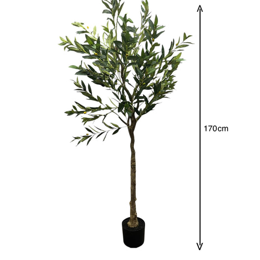 The size 170cm it features realistic green leaves and detailed branches that mimic the beauty of a natural olive tree.