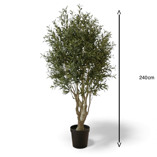 The size 240cm it features realistic green leaves and detailed branches that mimic the beauty of a natural olive tree.
