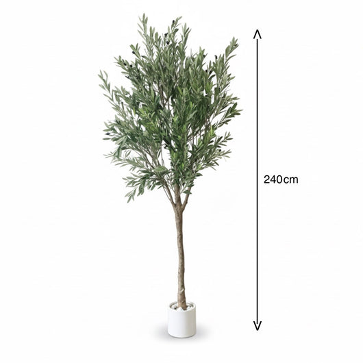 The size 240cm it features realistic green leaves and detailed branches that mimic the beauty of a natural olive tree.