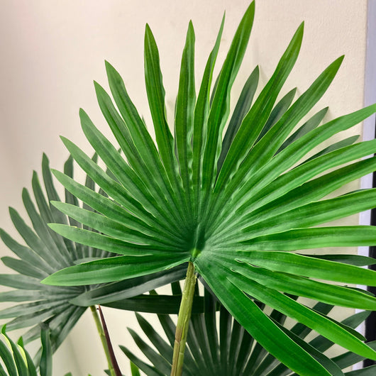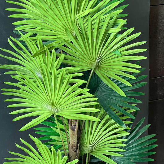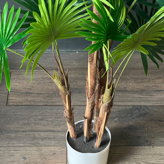 The artificial palm fan tree, standing 120cm tall, adds a tropical and refreshing vibe to any indoor space.