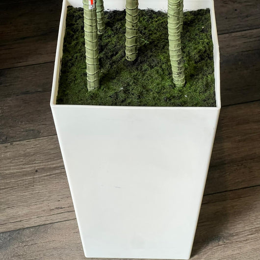 The tall white pot enhances its modern and elegant style, making it suitable for living rooms, offices, or entryways.