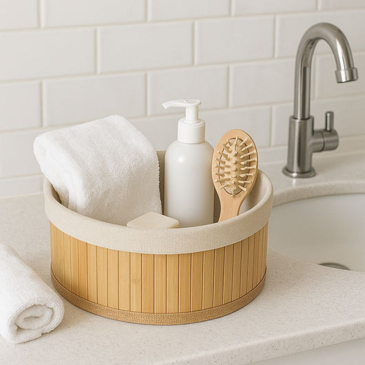 Crafted from durable bamboo with a soft fabric interior, each basket combines style and practicality.