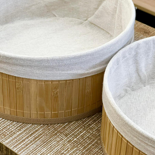 BAMBOO ROUND STORAGE BASKET SET 3 PIECE WITH FABRIC LINING