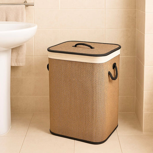 The Brown Laundry Basket with Lid is a practical and stylish solution for keeping your laundry organized.