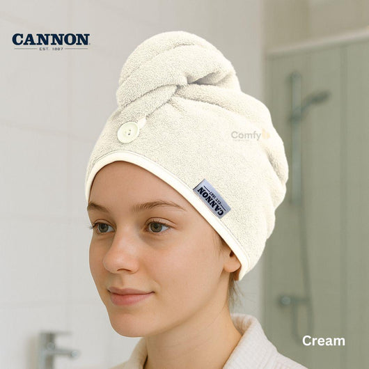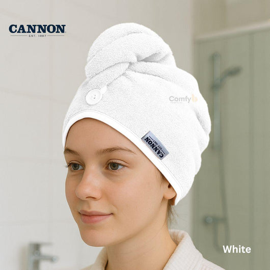 Introducing the Cannon Hair Towel, crafted from 100% cotton for exceptional softness and absorbency.