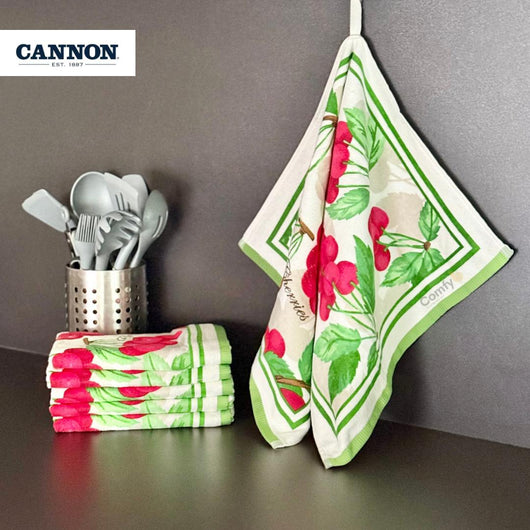 CANNON 100% COTTON TOWEL KITCHEN VELOUR SET 6 PIECES CHERRIES