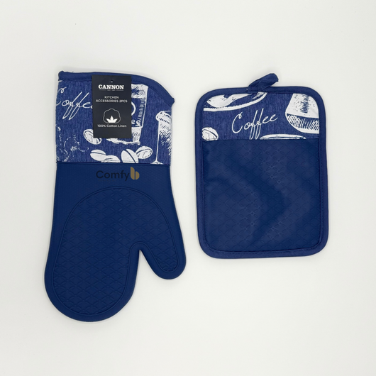 Enhance your kitchen with the Cannon Kitchen Accessories 2-Piece Set, featuring a heat-resistant oven mitt glove and a pot holder.