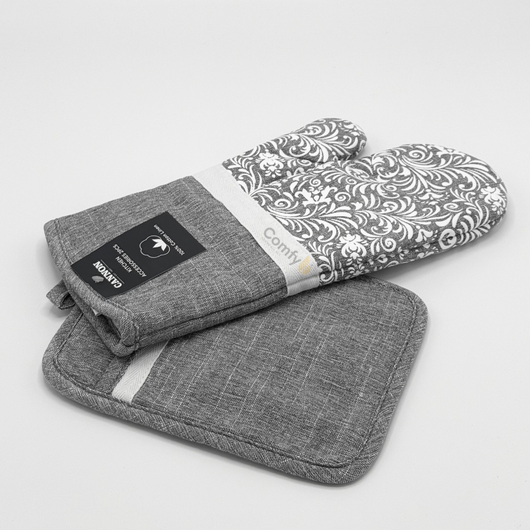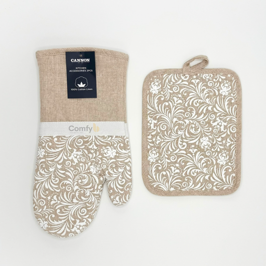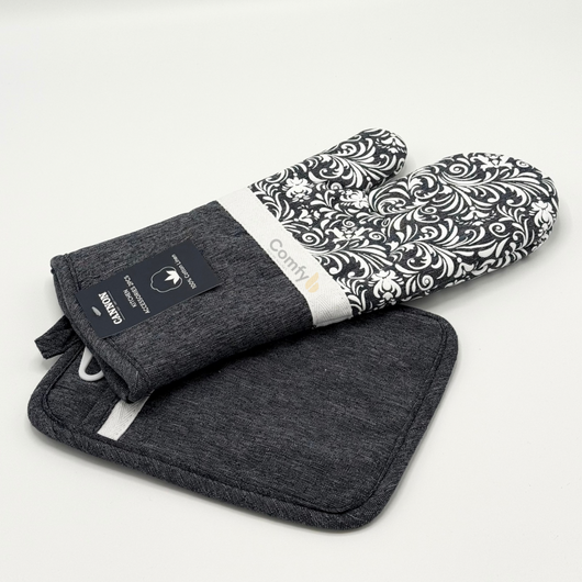 Upgrade your kitchen with the Cannon Kitchen Accessories 2-Piece Set, featuring a heat-resistant oven mitt glove and a pot holder.