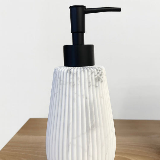 The Cannon Porcelain Soap Dispenser Marble Stripe adds a touch of sophistication to your bathroom or kitchen.
