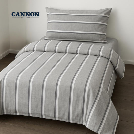 CANNON PRINTED POLY COTTON 50/50 BED SET STRIPED GREY