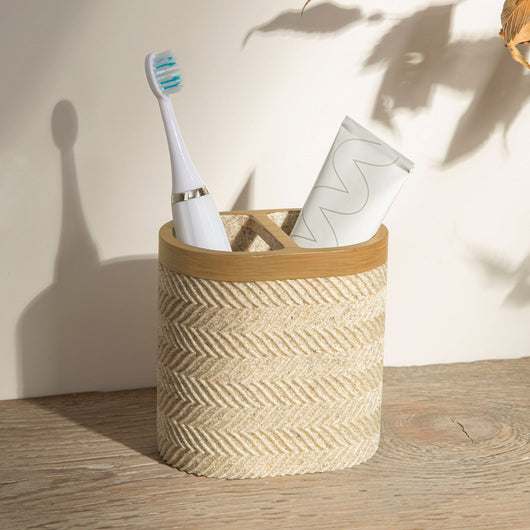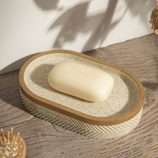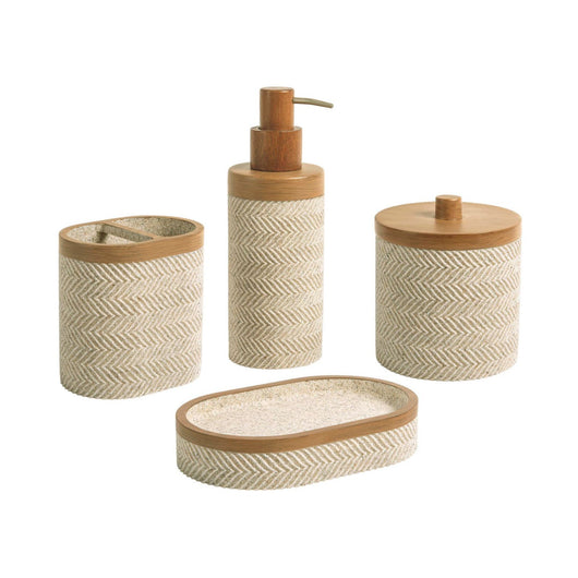 The Cannon Bathroom Resin Set 4 Pieces Camden combines luxury and practicality with its elegant beige and brown design.