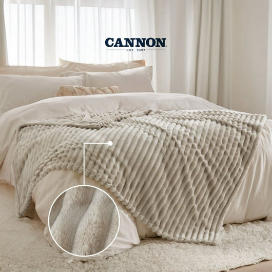 The Cannon Soft Striped Flannel Blanket 150x200cm offers warmth, softness, and timeless style.