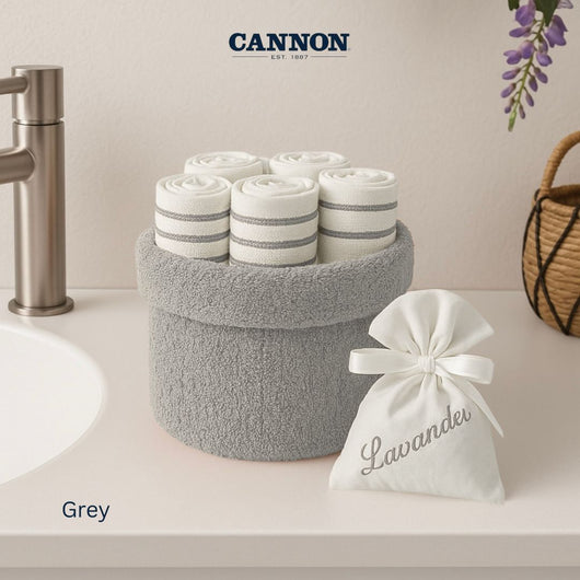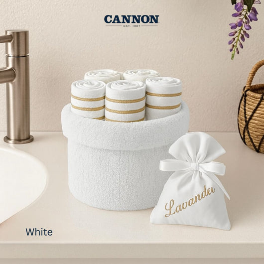 Enhance your bathroom with the Cannon Towels Basket Set, a perfect blend of luxury and practicality.