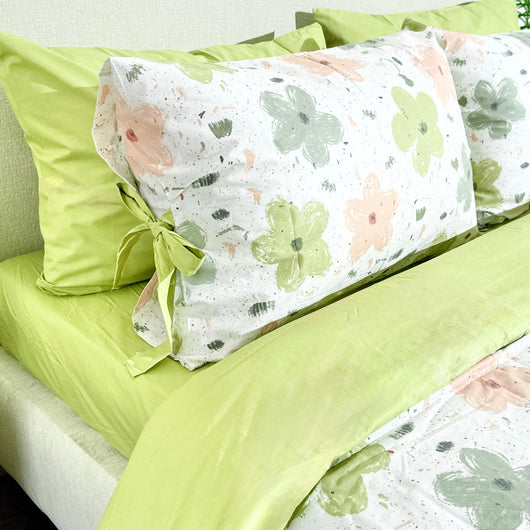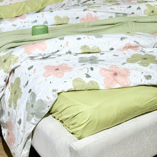 COMFYB 100% COTTON REVERSIBLE BED SET AUTUMN FLOWER GREEN