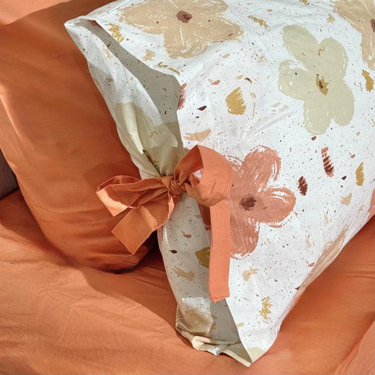 COMFYB 100% COTTON REVERSIBLE BED SET AUTUMN FLOWER ORANGE