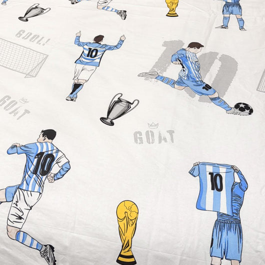 Bring energy and excitement to your bedroom with the Messi single bed set.