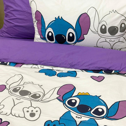 COMFYB 100% COTTON REVERSIBLE BED SET STITCH PURPLE