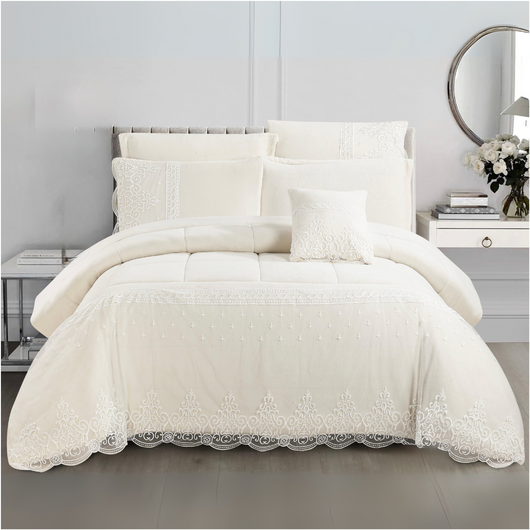 DENTELLE EMBROIDERED COMFORTER DOUBLE/KING SET 7 PIECES