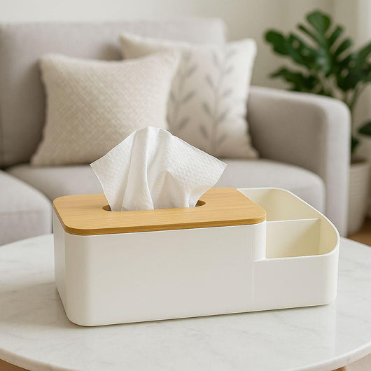 Ideal for living rooms, bathrooms, or offices, this tissue box keeps tissues organized while adding a touch of eco-friendly sophistication.