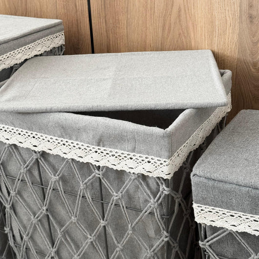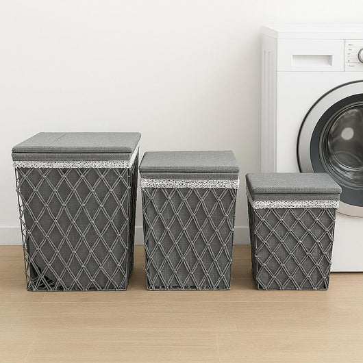 Made with durable materials and finished in a neutral grey tone, it keeps your laundry neatly stored while complementing any décor.