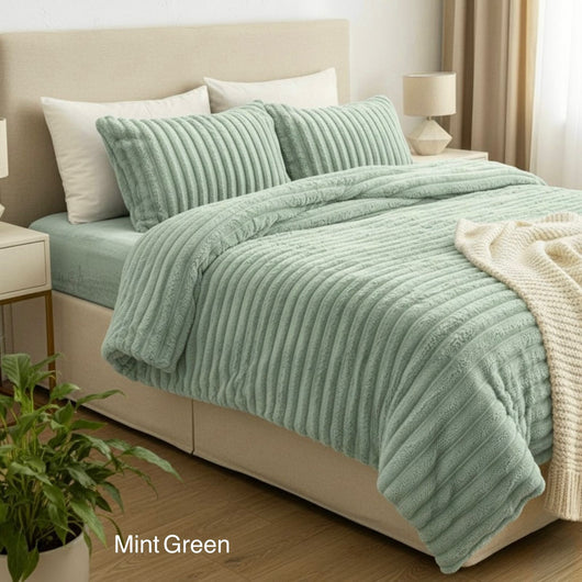 Lovy Flannel Stripe Duvet Cover Set offers warm comfort and a stylish look for your bedroom.