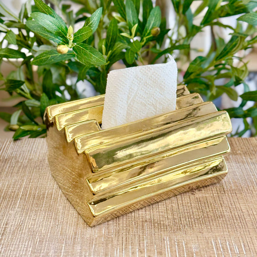 PORCELAIN STRIPED TISSUE BOX GOLD