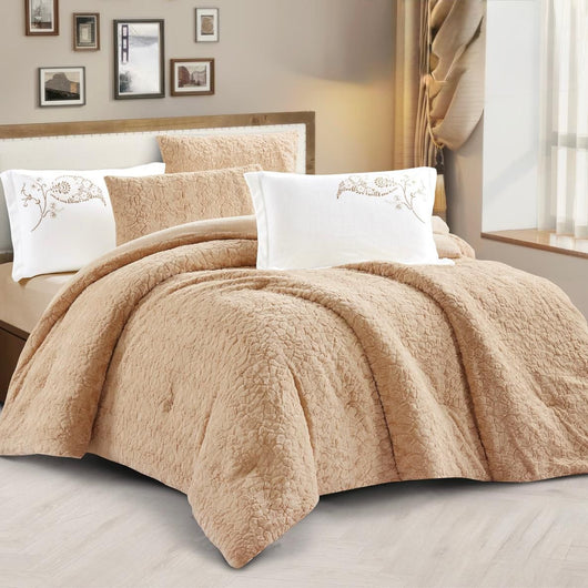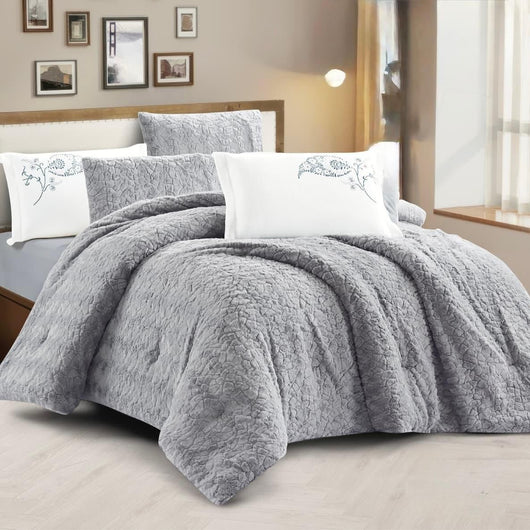 The Rabbit Fur Embroidered Comforter Set adds a touch of luxury and warmth to your bedroom.