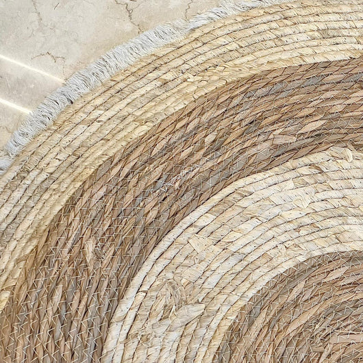 The straw round rug adds a touch of natural charm and simplicity to any room.