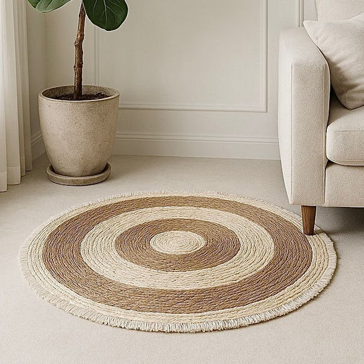 Available in two sizes, 90cm and 100cm, this rug fits perfectly in entryways, bedrooms, or under small tables.
