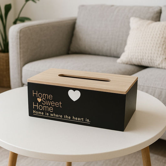 WOODEN TISSUE BOX HOME HEART BLACK